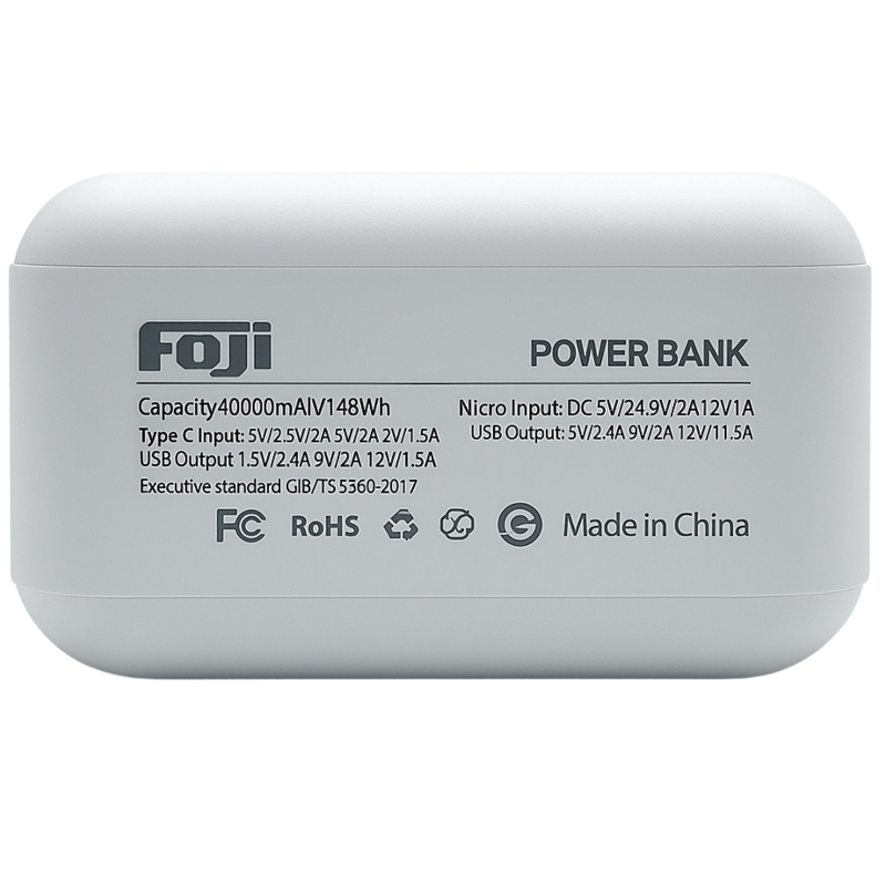 Stay charged wherever you go. FOJI 40000mAh Power Bank is the perfect choice for travelers, creators, and everyday users. Buy now and never run out of power.